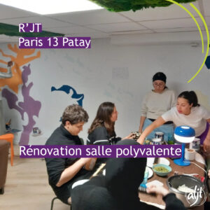 Paris 13 Patay➡️grâce à l’appel à projet pour la rénovation des salles polyvalentes, la salle de la résidence termine doucement sa transformation avec la finalisation de la fresque, réalisée par les résident.e.s. Lors d’un atelier sushis et makis, ils.elles ont débuté la fresque, qui a été terminée le lendemain, tant l’enthousiasme des résident.e.s était présent !