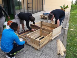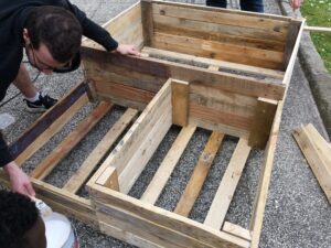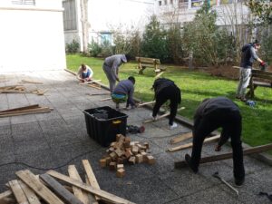 Après avoir démonté et poncé les planches, les participants ont ensuite pu les assembler et les lasurer pour donner vie au carré potager de la résidence.