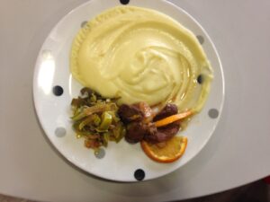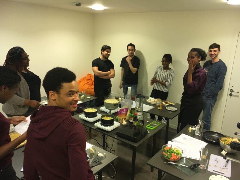 Passionnée de cuisine et pédagogue elle a offert un cours de cuisine aux résidents lors d’une soirée ou les joyeux et gourmands cobayes ont pu déguster un velouté de panais & pointe de vanille ainsi qu’un filet de canette à l’orange et sa fondue de poireaux.