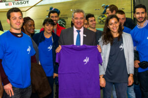 En effet, la communauté d’agglomération accueillera plusieurs épreuves, notamment le cyclisme sur piste. L’événement s’est déroulé au Vélodrome national de St-Quentin dès 17h. Des jeunes de la résidence de Montigny-le-Bretonneux (78) étaient présents pour ce jour historique et ont été accueillis par le maire, également président de la communauté d’agglomération de St-Quentin-en-Yvelines, M. Michel LAUGIER.