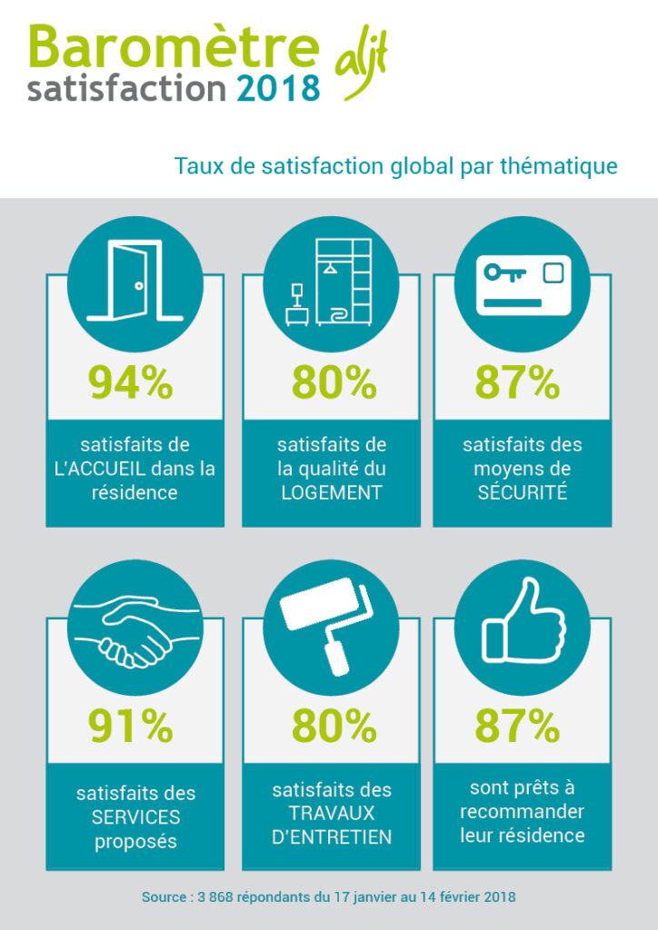 Les équipes de l’ALJT remercient tous les résidents ayant participé à cette enquête de satisfaction dont les résultats seront présentés lors des prochaines Assemblées Générales au sein de chacune des résidences.