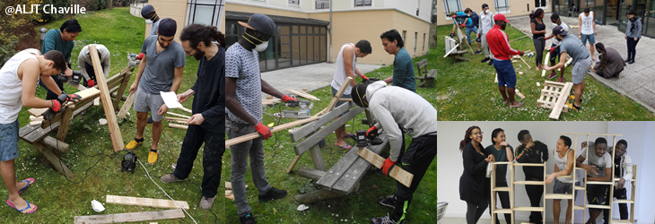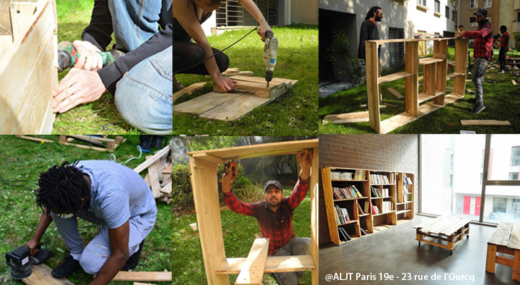 Les résidents du 23 rue de l’Ourcq ont pu s’essayer à la récupération créative à travers la conception de meubles en palettes. Nicolas Musso (Palettes Addict) a mené trois séances au cours desquelles il a transmis son savoir-faire aux jeunes présents. Les participants se sont investis et n’ont pas manqué d’entrain sur toutes les étapes de fabrication : découpe de planches, ponçage, montage, … Ceci a permis de concevoir une bibliothèque, une table basse et un banc pour agrémenter les espaces collectifs de la résidence.