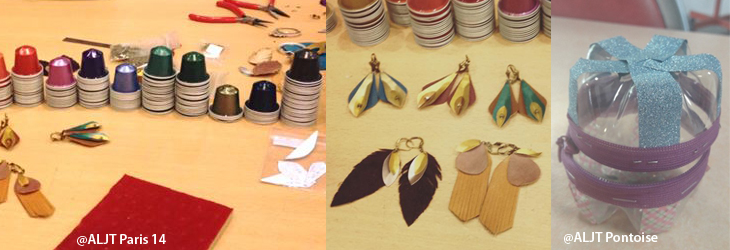 Un atelier upcycling a été organisé dans la résidence le 5 avril autour du concept suivant : sensibilisation autour des déchets industriels et éléments de récupération à travers un atelier Do It Yourself ludique et créatif. Les résidents ont confectionné des bijoux en utilisant des chutes de cuir industriel récoltés chez des revendeurs et des capsules Nespresso. Cet atelier a été animé par L’Atelier Oplatka qui sera à nouveau sollicité en décembre 2017 pour animer un atelier créatif/ upcycling afin de fabriquer soi-même des cadeaux de Noël.