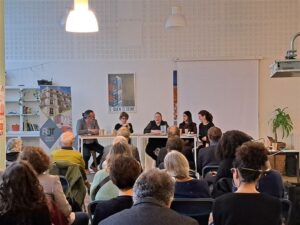 La seconde table-ronde portait sur le « Collectif et mixité : enjeux et difficultés » avec Florence Durieux, déléguée régionale de l’Union francilienne des fédérations des centres sociaux, Cécile Poletti des Petits débrouillards, Fatima-Zahra Yahyaoui, résidente à l’ALJT de Saint-Ouen et Jérôme Cacciaguerra, directeur général de l’ALJT. Un grand merci à Thibault Patriarche, directeur d’établissement des résidences Paris 18 et Ariane Eksl, directrice de l’ingénierie sociale et de la communication pour l’animation des tables-rondes.